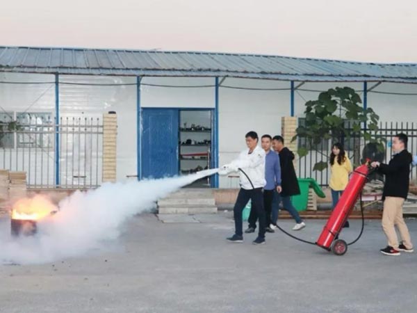 课上,保安邹队和安全部汤工,介绍了身前的推车式二氧化碳灭火器,着重强调了,操作该型号灭火器,需带上消防手套,防止被二氧化碳冻伤,现场给小组成员演示了一次,小组成员也依次上前实操体验。