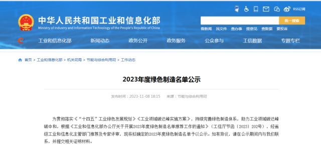 2023年11月8日,在国家工业和信息化部发布的《2023年度绿色制造名单公示》中,湖南立方新能源科技有限责任公司(简称“立方”)获评“国家级绿色工厂”荣誉称号。这是继“国家绿色设计示范企业”、“国家绿色设计产品”后再获国家认可,实现了立方在绿色制造体系的“三连贯”,也是对立方践行绿色生产理念的高度认可。