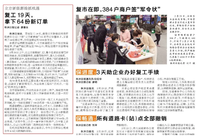 立方作为积极复工的企业,获得株洲新闻联播、株洲日报等媒体报道。