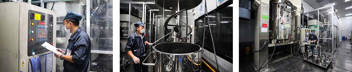 引入国内外搅拌设备,实施先进的搅拌生产工艺,实现全自动化的加料、出料流程管控。提高的生产效率,高精准的控制方式。