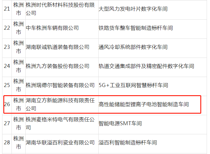近日,湖南省工业和信息化厅对外公示了2022年度湖南省智能制造标杆车间名单,立方新能源“高性能储能型锂离子电池智能制造车间”脱颖而出,成功获评2022年度湖南省智能制造标杆车间。